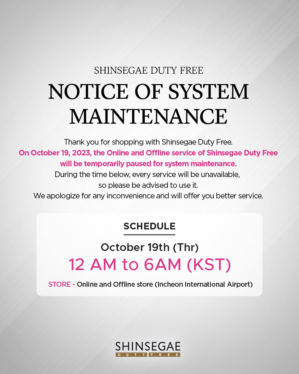 NOTICE OF SYSTEM MAINTENANCE(10/19)