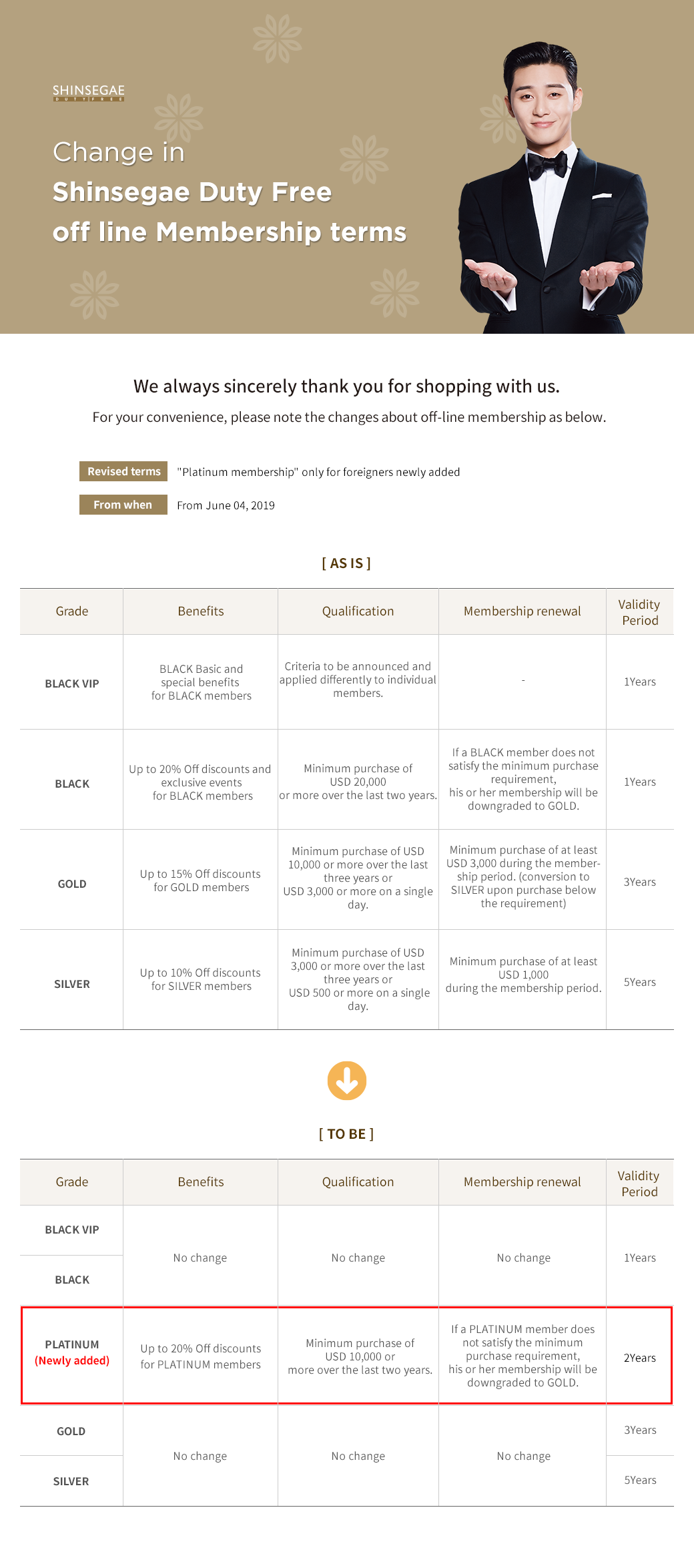 Change in Shinsegae Duty Free off line Membership terms