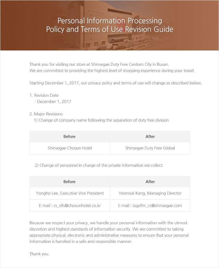 Personal Information Processing Policy and Terms of Use Revision Guide