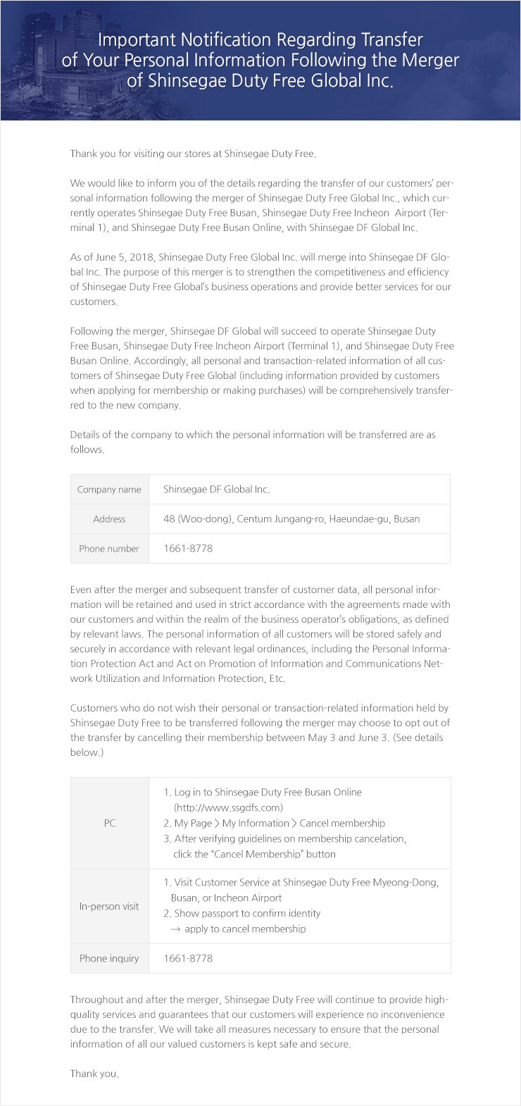 Important Notification Regarding Transfer of Your Personal Information Following...