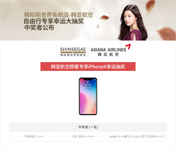韩际新世界免税店-韩亚航空 自由行专享幸运大抽奖 中奖者公布