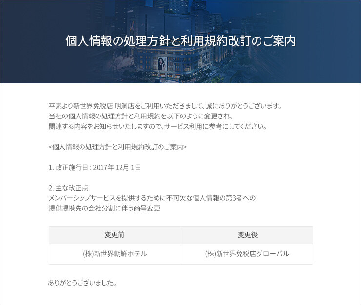 [明洞店] 個人情報の処理方針と利用規約改訂のご案内