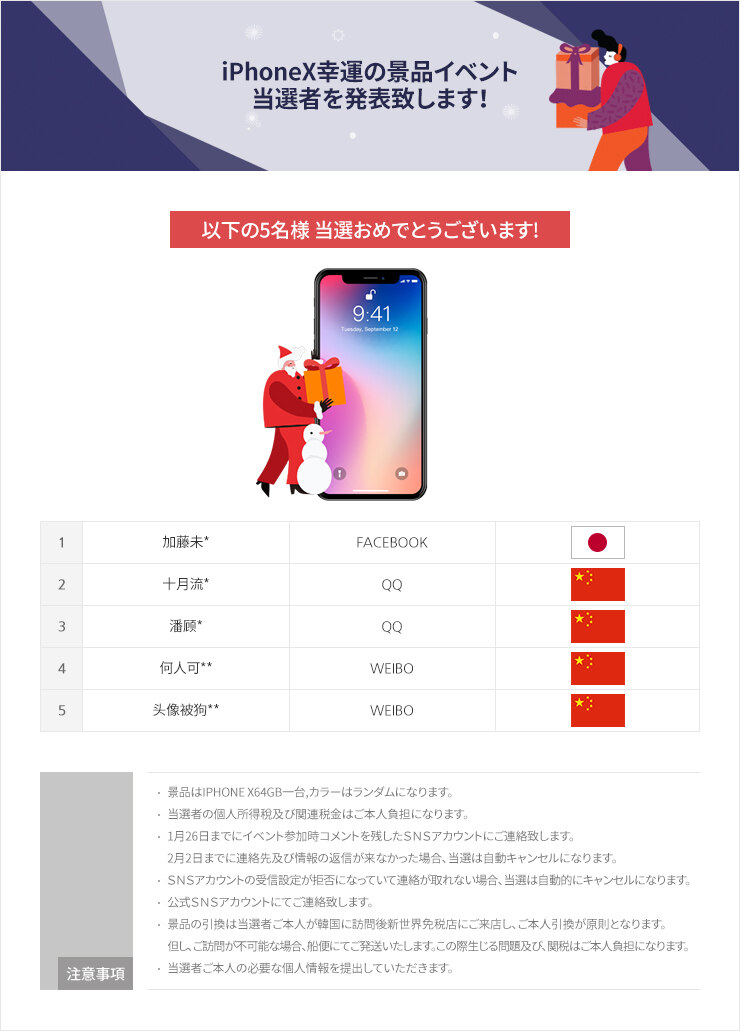 iPhoneX幸運の景品イベント当選者を発表致します!